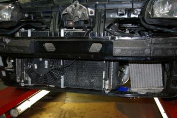 Ein leistungsstarker Lüfter wurde dafür blasend vor die Kühlereinheit montiert.Für den Ladeluftkühler haben wir auch ein Plätzchen neben dem Motorkühler gefunden. Da er direkt im Luftstrom sitzt, liegt der Wirkungsgrad erfreulich hoch, was der Motorleistung natürlich zugute kommt. Die ganzen Ladeluftrohre und die Verbindungs-stücke sind Teils aus polierten Aluminium und VA-Rohren sowie den haltbaren Samco-Schläuchen versehen. | |