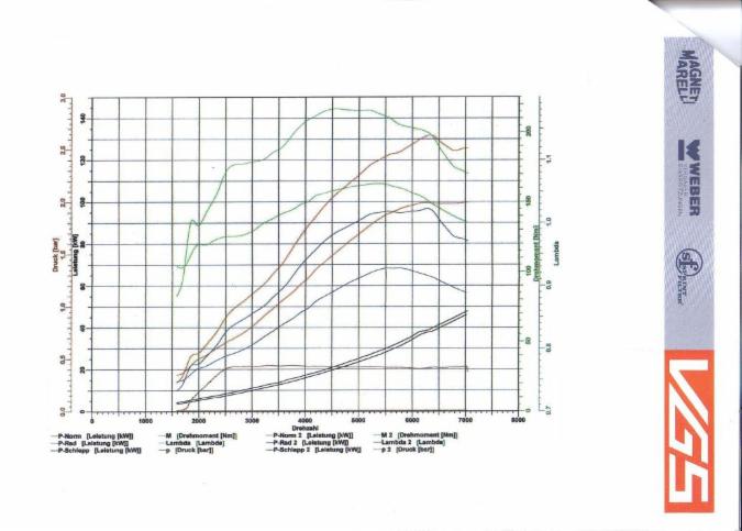 Also hier nochmal die Daten zusammengefasst: Serienmotor hatte ein Drehmoment bei 4500 U/min von maximal 157 Nm. Und eine Leistung von 131 PS bei 6700 U/min. Unser Umbau bietet ab 2500 U/min schon ein Drehmoment von 160 Nm und ab 4500 U/min 220 Nm bis zur Enddrehzahl. Die Maximal Leistung liegt bei 180 PS und 6700 U/min. | |
